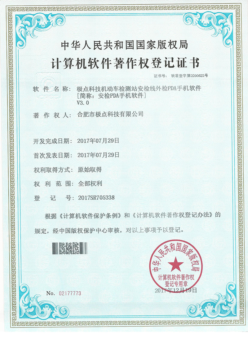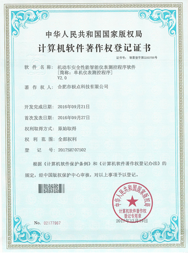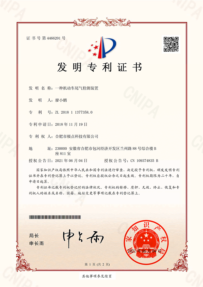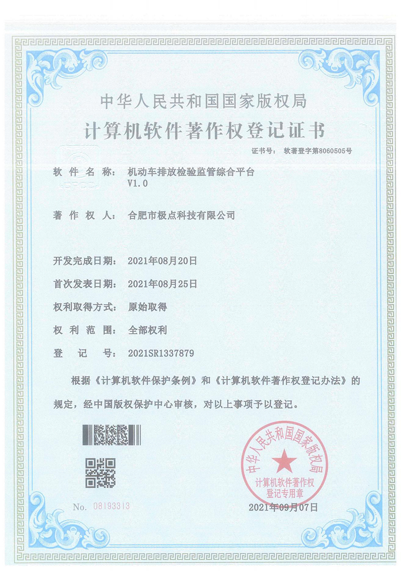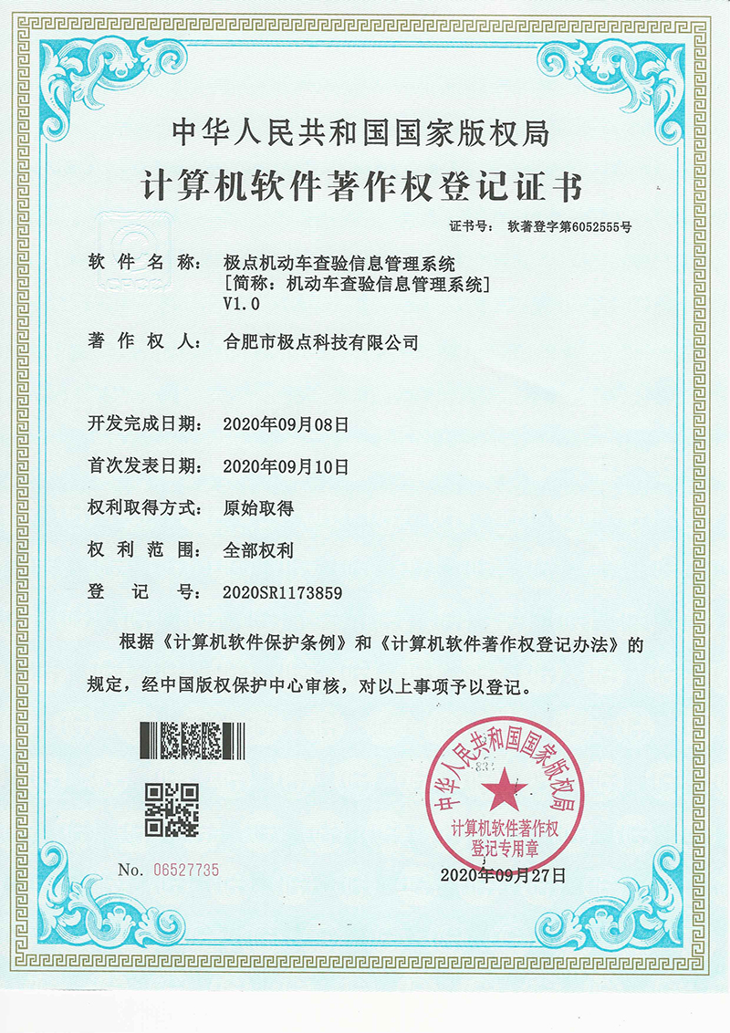 合肥市極點科技有限公司位于科教名城合肥市。是一家專注于機動車檢測系統(tǒng)的研發(fā)與銷售的高科技公司。產(chǎn)品涵蓋機動車檢測設(shè)備、圖像識別、人工智能、環(huán)保檢測、工業(yè)自動化等方面,廣泛應(yīng)用于公安、環(huán)保、交通、教育、汽車生產(chǎn)與維護等領(lǐng)域。公司產(chǎn)品擁有多項發(fā)明專利和實用新型專利以及數(shù)十項軟件著作權(quán)。