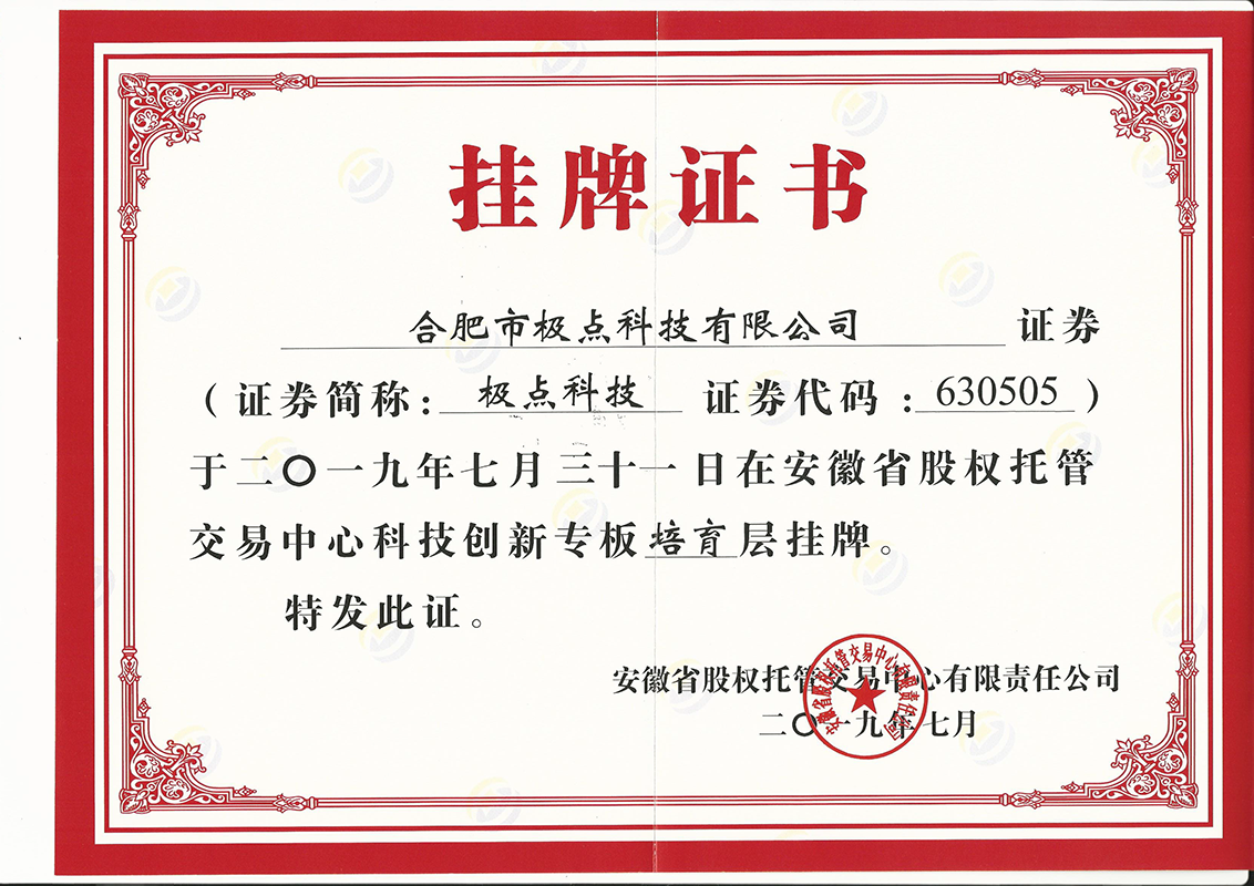 公司下設(shè)合肥極點機械有限公司、廈門市極點聯(lián)合科技有限公司、南寧市極創(chuàng)科技有限公司、長沙市登極科技有限公司、沈陽市極點科技有限公司5家子公司,并設(shè)立十余家辦事處。目前擁有客戶600余家,銷售檢測設(shè)備1000余套,業(yè)務(wù)范圍涵蓋十余省份。