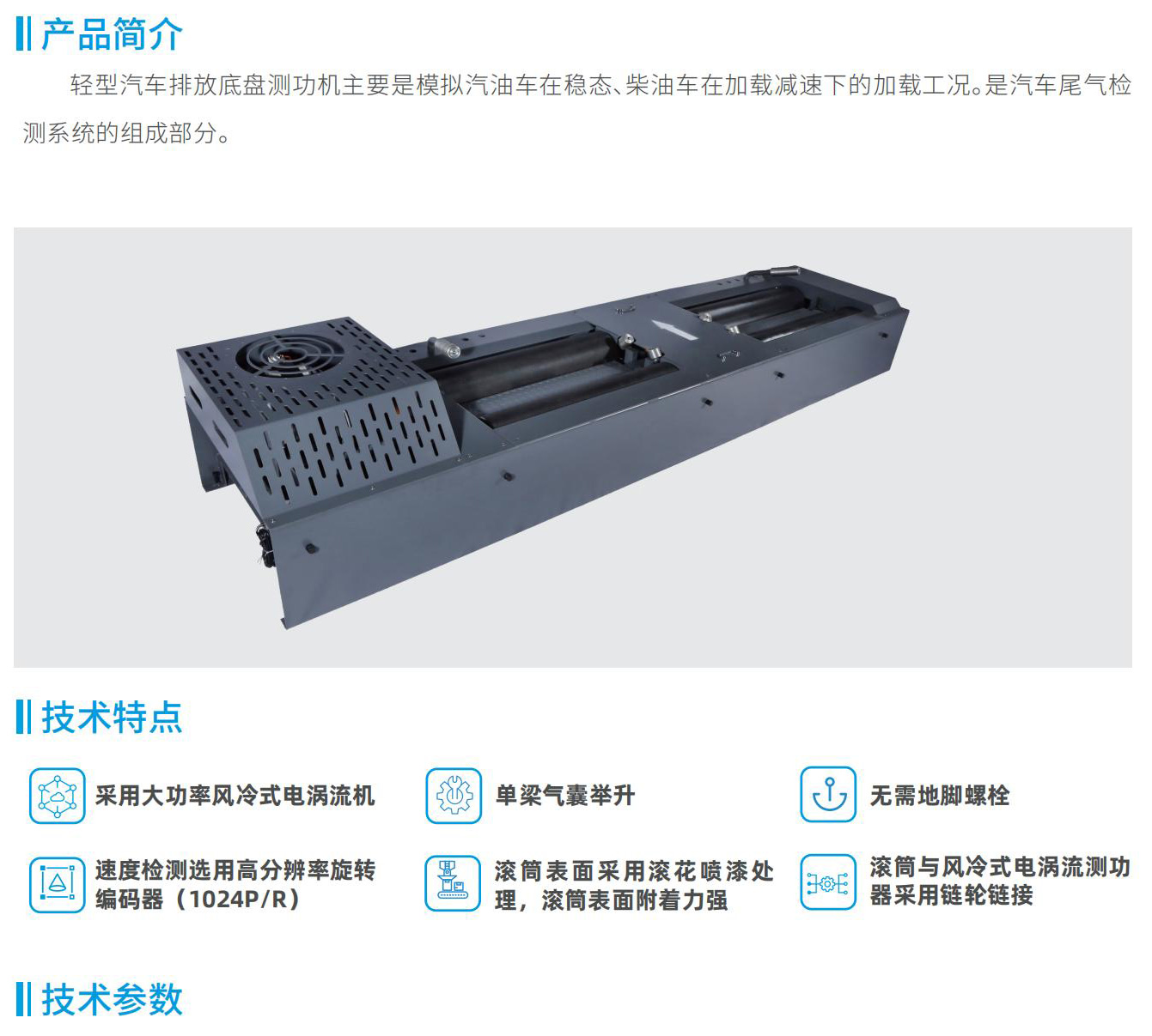輕型汽車排放底盤測功機主要是模擬汽油車在穩(wěn)態(tài)、柴油車在加載減速下的加載工況。是汽車尾氣檢測系統(tǒng)的組成部分。